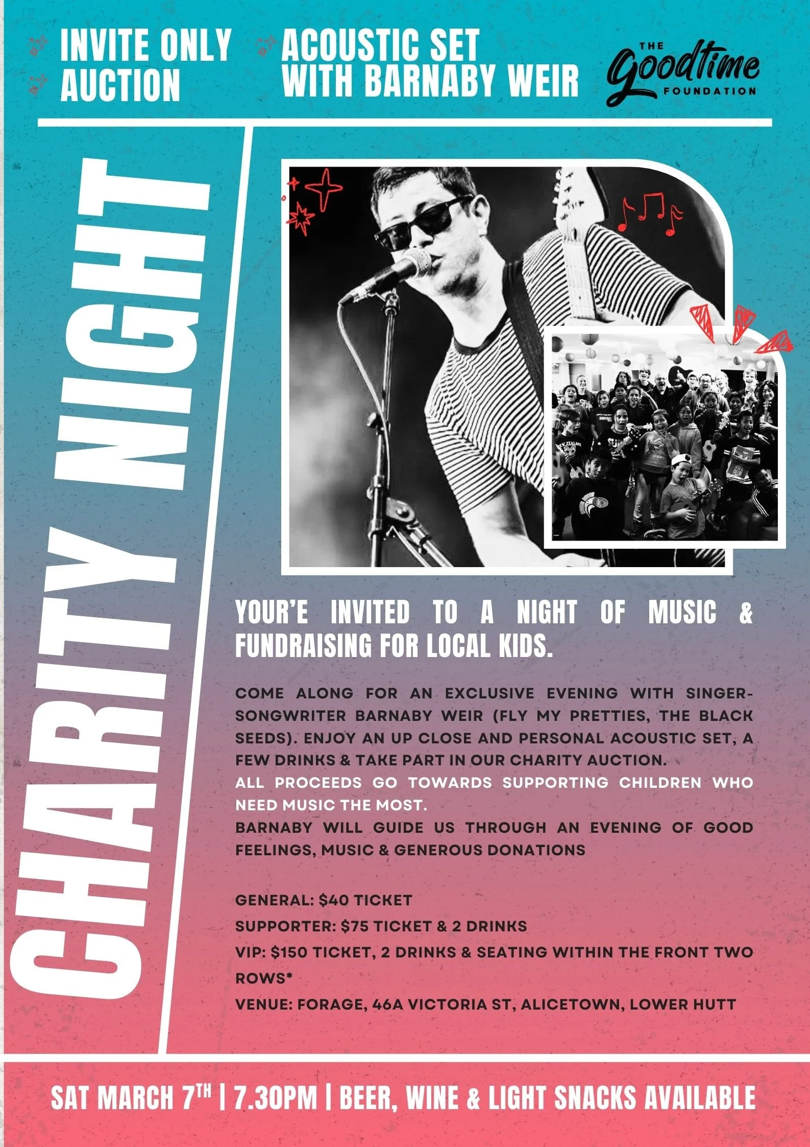 Saturday 7th March, Barnaby Weir Performs live and we host our first charity auction! Buy a ticket below! Very limited tickets available!